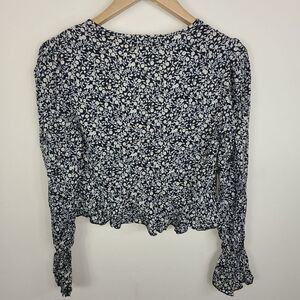 Shein Boho Ditzy Daisy Print Crop Front Tie Shirt (M)