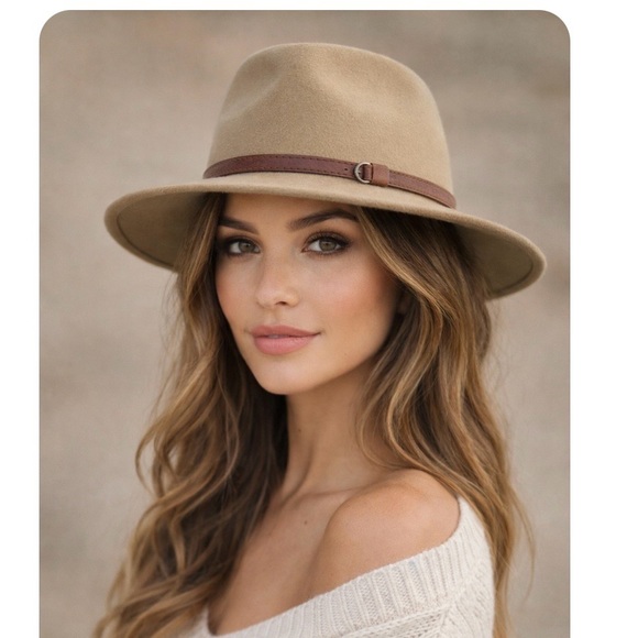 Shein Brown Felt Hat Womens Tan Khaki Fedora Belt Boho Chic Belt