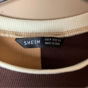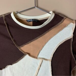 [Shein] Brown Patchwork Cropped Short Sleeve Top