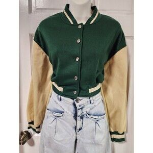 Shein Colorblock Drop Shoulder Crop Varsity Jacket Dark Green