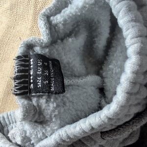 Comfortable light gray sweatpants with elastic cuffs. Perfect for lounging.