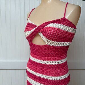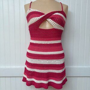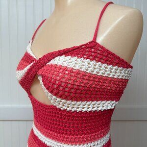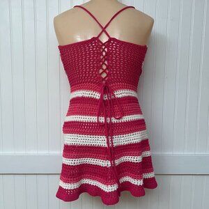 Shein Crochet Swim Cover Up Dress Tie Back Striped Cross Chest Knit Bright