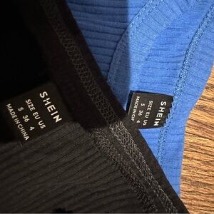Stylish ribbed crop tops. One in vibrant blue. One in classic black. Perfect for casual wear.