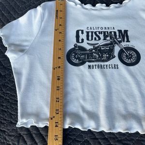 Shein Crop Top Womens Large White Black Ribbed Motorcycle Cropped Lettuce Trim