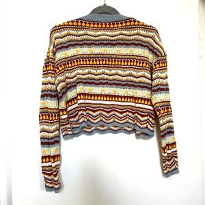 17 inch length, 21 inch pit to pit. Size small, crop sweater. Multicolored. Blue, yellow, red, white. Excellent condition. Ask questions before purchase.