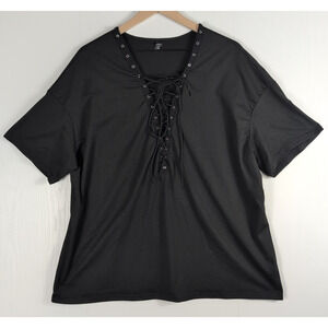 Shein Curve 0X Black Lace-Up Tunic Tee Women's Plus Large Soft Minimalist Top