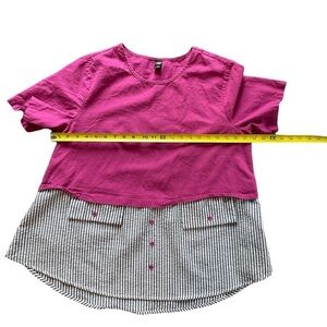 Preowned Shein Curves shirt. Super cute mixed patterns shirt with seersucker bottom. 100% Cotton. Excellent conditon Size measurements are shown in the pictures. Size 1XL