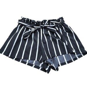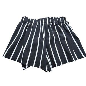 Shein Curve 1XL Black & White Striped High-Waisted Paperbag Shorts