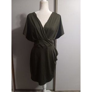 Shein Curve 1XL Green Deep V Casual Occasion Date Knee Length Classic Stretch Dr