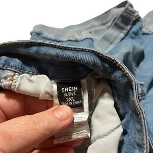 Shein Curve 2XL Denim Shorts Light Wash Distressed Frayed Hem Womens