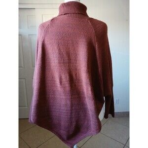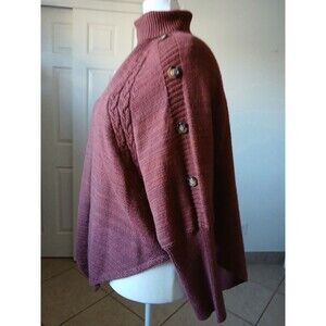 Shein Curve 2XL Poncho Sweater Burgundy Turtleneck Cable Knit Button Detail
