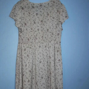 The flutter sleeves on this dress are such a nice accent. The print is beautiful with the red against the almost cream colored background. Such a flattering fit, preloved but like new condition. Could be dressed up or down, and worn in any season.