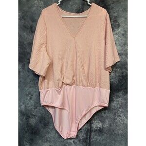 Shein Curve 4xl Peach Short Sleeve V-Neck Wrap Front Textured Bodysuit