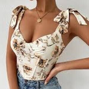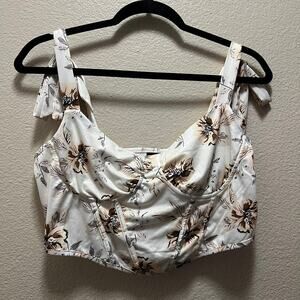 Shein Curve Allover Floral Print Tie Shoulder Wide Strap Top Plus Size 0XL