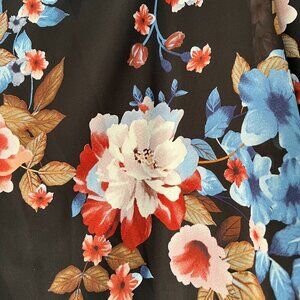 Color - Black with flowers that are in different shades of blues, pinks, creams, and browns. Color is not universal through out. Color can vary due to lighting and devices used.