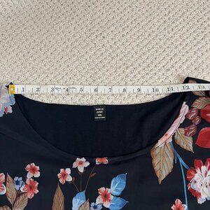 Shein Curve Black Top With Floral Sheer Overlay Size 4XL