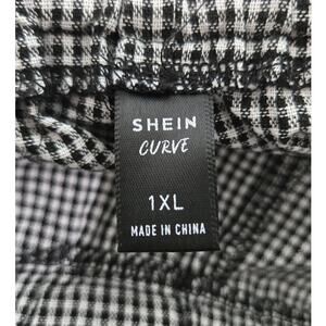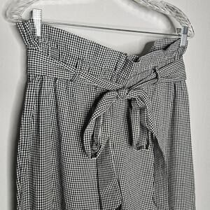 Shein Curve Black & White Gingham Belted Paperbag Waist Pants Women's 1XL