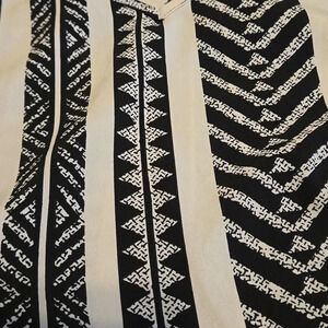 Design: This stylish top features bold vertical black and white stripes, offering a flattering and elongating look.