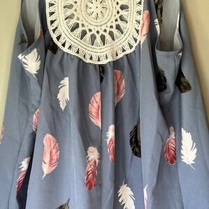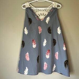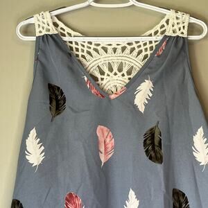 Shein Curve Bluish Gray Feather Print Tank Top Size 2XL