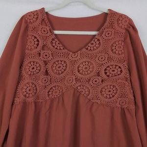 Shein Curve Boho Blouse Size XL in Orange w/ Lace Detail