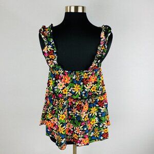 Shein Curve Colorful Variety Of Flowers Print Ruffle Strap Sleeves Tank Top 0XL