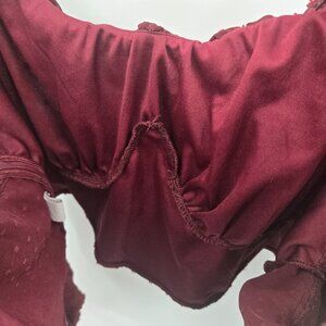 Shein Curve Cropped Burgundy Swiss Dots Blouse 2xl