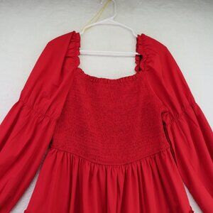 Shein Curve Dress Size 0 XL Red Smocked Long Sleeve Tiered Ruffles Square Neck