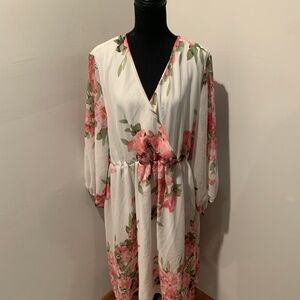 Shein Curve Floral Faux Wrap Dress. A-line silhouette. Women's size 4XL. Waist belt is missing but gently used condition.