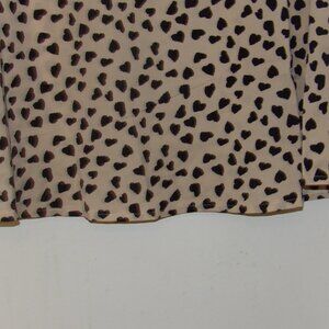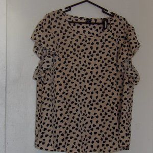 Shein Curve Tan with brown/Dark Hearts, flutter sleeves, scoop neck Polyester blouse in good pre owned condition no holes or stains minimal wash wear, Size 4X measurement are roughly 29" from shoulder to hem and about 26" pit to pit, pet friendly non smoking home