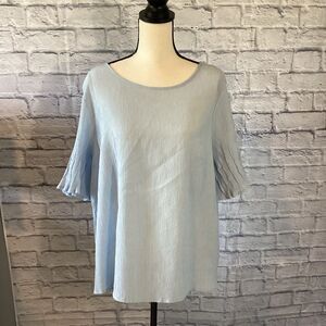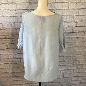 Elevate your wardrobe with this elegant light blue top. Perfect for any occasion, it offers a comfortable and stylish fit.