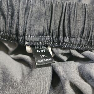 Shein Curve Pants Size 1X Wide Leg Elastic Waist Shiny Silky Dark Gray Trousers