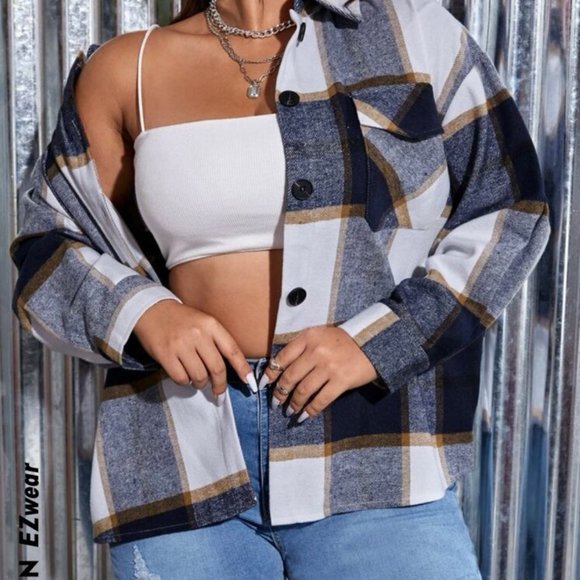 Shein Curve Plaid Flap Pocket Shacket, size 3XL. In excellent pre-owned condition, maybe worn less than a handful of times.