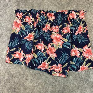 Shein Curve Shorts 4X High Waist Mini Navy Blue Tropical Floral Pull On Hibiscus