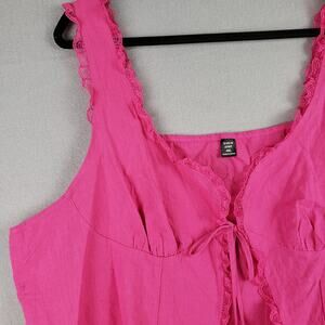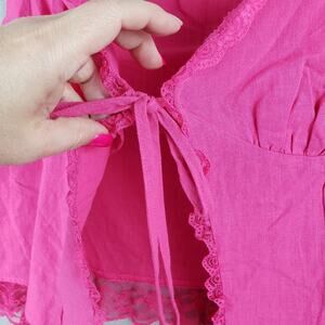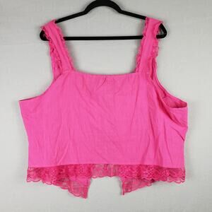 Shein Curve Size 4XL Tie Front Babydoll Crop Top Hot Pink Lace Trim Festival