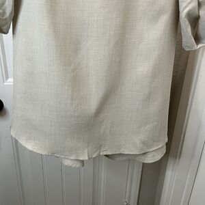 Shein Curve Tan Cream Faux Button Boho Lagenlook Roll Tab Tunic Top Womens 2XL