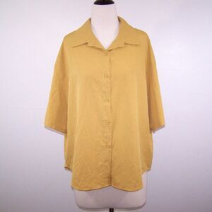 Shein Curve Top Shirt Womens 1XL Button Front Short Sleeve Mustard Yellow Blouse