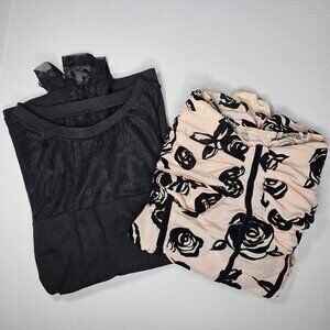 Shein Curve Two Top Bundle Mesh Floral Bodysuit + Polka Dot Mesh Slv Top Size 3X