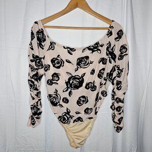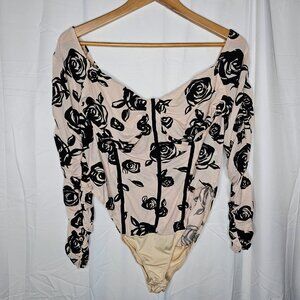 1. Floral Flockig Mesh Off Shoulder Ruched Bustier Bodysuit size 3x