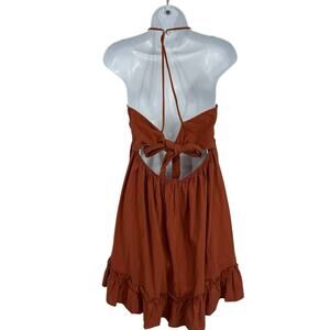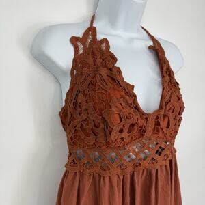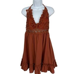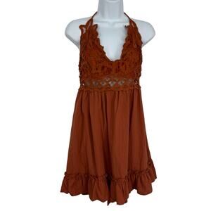 Shein Curve Vacay Spaghetti Strap Mini Dress Size XL Rust Crochet Lace Tie