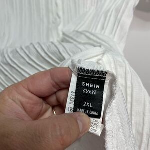 Freshen up your wardrobe with this Shein Curve White Matching Shorts & Top Set in Size 2XL. Designed for both comfort and style, this lightweight set includes a relaxed-fit top and coordinating high-waisted shorts—perfect for summer days, lounging, or casual outings. The clean white color offers a crisp, on-trend look. Please note: the shorts have some minor thread pulling—please see pictures for details.