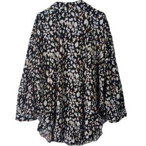 Shein Curve Womans Button Front Shirt Long Sleeve Ruffled Hem Size 3XL Black