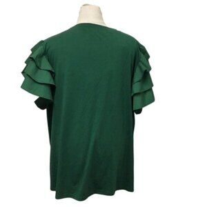 Shein Curve Women’s Layered Ruffle Sleeve Top, Emerald, size 4XL