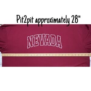 You will love this oversized drop shoulder tee from Shein Curve. It has short sleeves, a crewneck and Nevada graphic across the front. Color is burgundy.