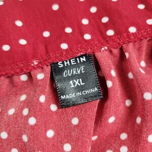 Shein Womens Skirt 1x Red White Polka Dots A Line Curved Holiday Christmas