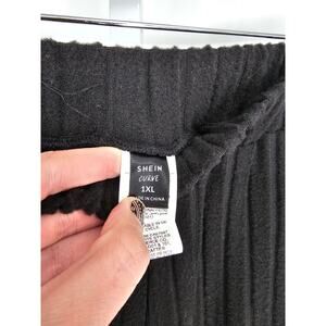 Shein Curve Womens Sz 1XL Wide Leg Black Pull On Pants Ribbed