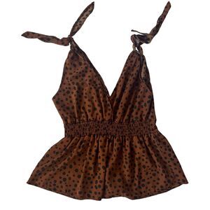 Shein Curve Women's Tie Straps Brown and Black Animal Print Tank Top