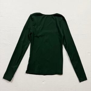 Shein Dark Green Square Neck Fitted Long Sleeve Top, Size XS