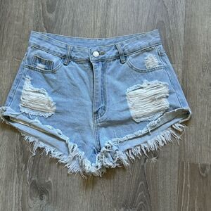 Shein Denim Short Distressed Cotton Frayed Size 30 Blue