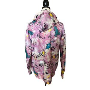 Shein Dinosaur Tie Dye Hoodie Purple Sunshine Faces Fun Kangaroo Pocket Medium