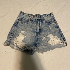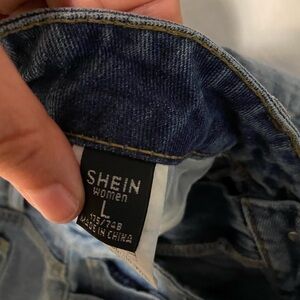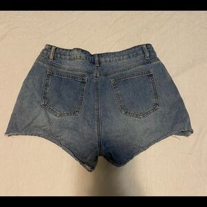 Shein Distressed Medium Wash Denim Blue Jean Shorts Womens Juniors Size L Large